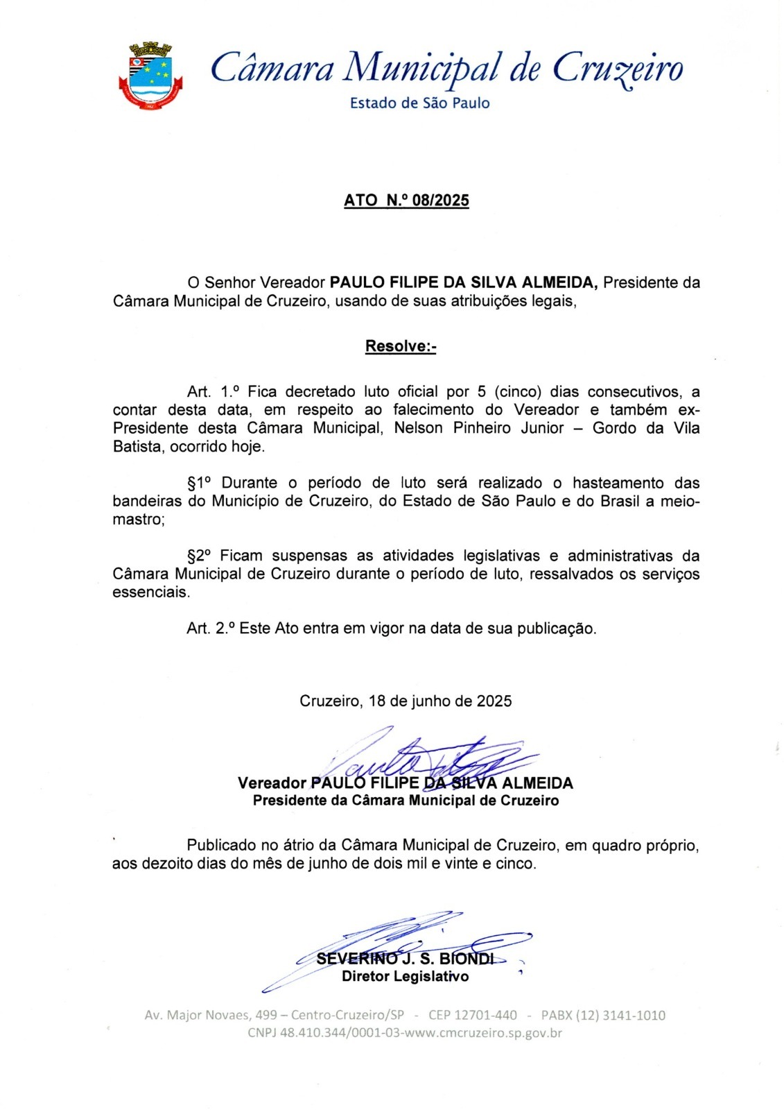 Próximo artigo: Nota de Pesar - Nelson Pinheiro Junior (Gordo da Vila Batista)